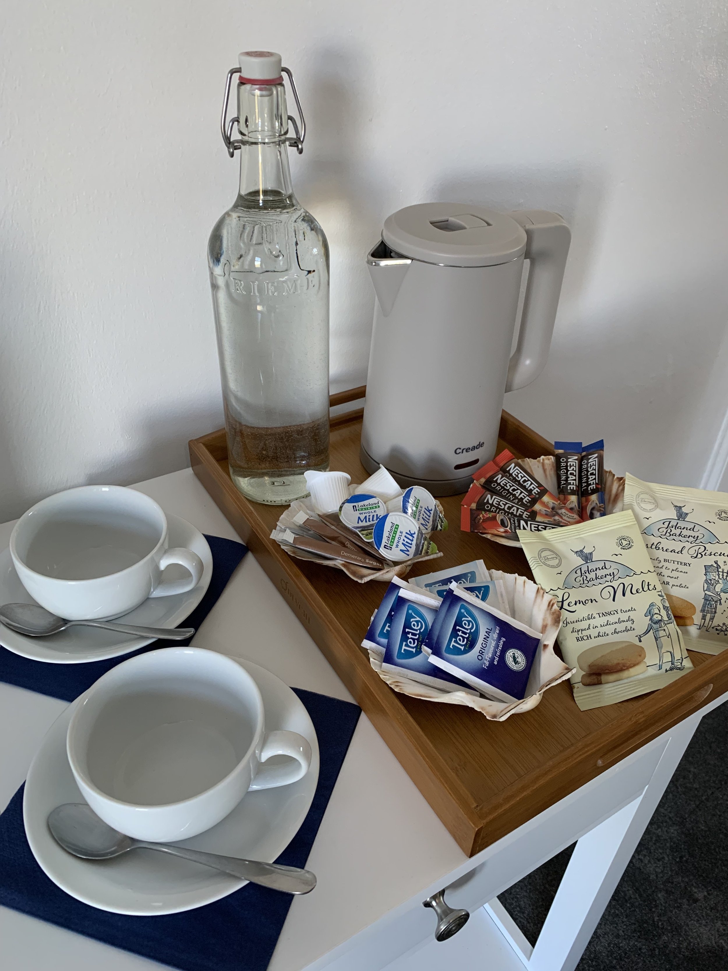Our spacious king, en-suite, room has breathtaking views of Tobermory Bay and beyond to Calve Island and the Morven hills. The room has a modern feel, tastefully furnished with our guests needs in mind in every part of the design. We provide a comfortable retreat, offering a luxurious king size bed, Armchairs, Smart TV with FreeSat and free Wi-Fi. Make yourself a cuppa and enjoy the complimentary Island Bakery biscuits. We provide a daily housekeeping service, ensuring your room is clean for the duration of your stay at with us.